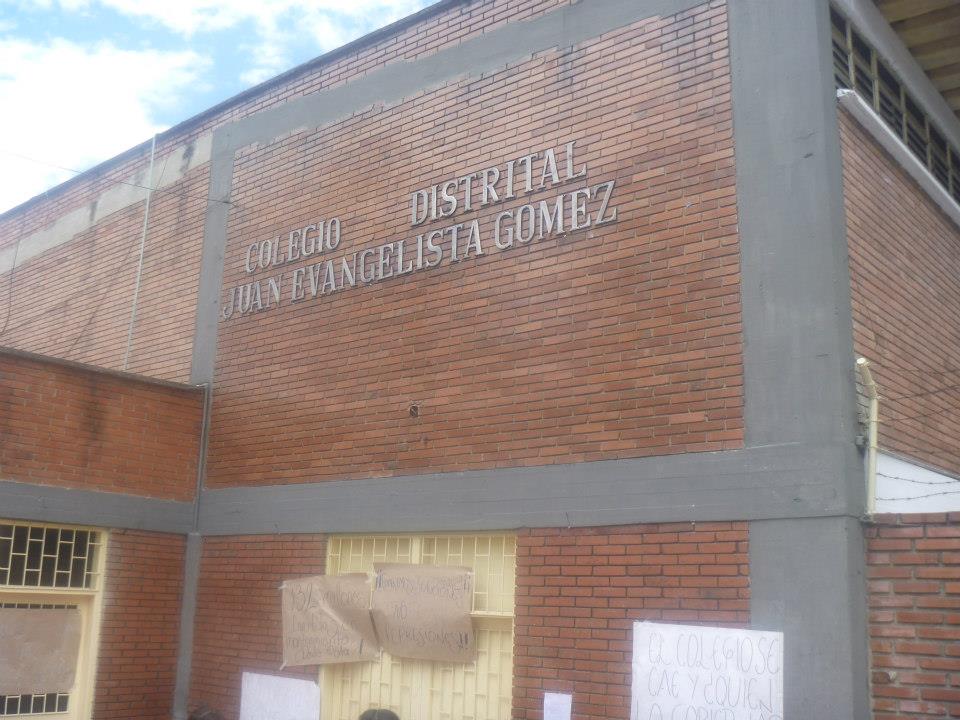 Por otro lado, el día 12 de marzo, estudiantes del Colegio Distrital Juan Evangelista Gómez, ubicado en la localidad de San Cristóbal, también se tomaron las instalaciones del plantel, lo cual conllevó a un paro en la institución que se prolongó alrededor de una semana. El colegio presentaba graves problemas con la infraestructura e irregularidades con los recursos económicos puesto que se habían invertido 132 millones de pesos, los cuales nunca se vieron. Varias educandas del Pre Icfes Popular de San Cristóbal “también el viento” fueron protagonistas de esta manifestación, muchas de ellas participaron activamente en esta toma ocupando las instalaciones de la institución, realizando un pliego de exigencias y conversando con algunas personas de colegios como el INEM del Tunal con el fin de intercambiar experiencias y aprender de las mismas. El Pre Icfes Popular de San Cristóbal también se solidarizó con esta gran iniciativa, ofreciéndoles su máxima colaboración recogiendo comida, cobijas y demás utensilios que necesitaban las y los chicos de la institución. A su vez, realizaron videos, reseñas y una carta de apoyo frente a lo que estaba ocurriendo para ese entonces en donde les aportaron una serie de recomendaciones para una mejor organización de la toma para que de esta manera se lograran cumplir sus exigencias.
