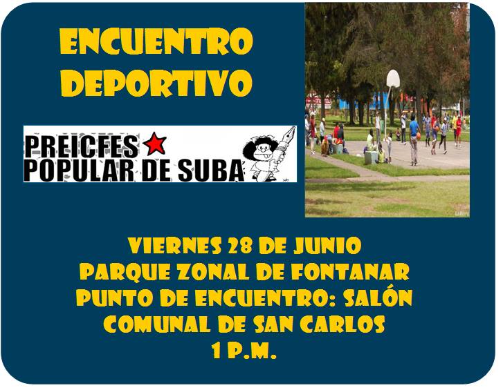 Encuentro Deportivo PIP Suba junio 28, 2013 · de cpeducacionpopularenlucha · en Uncategorized. · Este viernes 28 de junio Encuentro Deportivo Pre Icfes Popular (PIP) de Suba Comparte esto: Haz clic para compartir en X (Se abre en una ventana nueva) X Haz clic para compartir en Facebook (Se abre en una ventana nueva) Facebook Me gusta Cargando... Relacionado