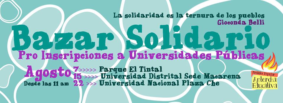 Bazares Solidarios Pre Icfes Popular de Kennedy Pro Inscripciones a las Universidades Públicas, cuya finalidad es recoger fondos para los formularios de los exámenes de admisión a las Universidades Públicas de lxs educandxs que pertenecen a este proceso!!!