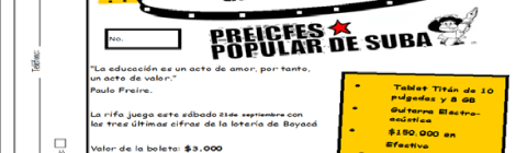 A partir de hoy, talleristas y educandxs del Pre Icfes Popular (PIP) de Suba estarán vendiendo las boletas para la Gran Rifa Solidaria, cuya finalidad es recoger fondos para pagar […]
