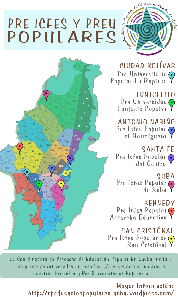La Coordinadora de Procesos de Educación Popular En Lucha invita a las personas interesadas en estudiar y/o enseñar a vincularse a nuestros Pre Icfes y Pre Universitarios Populares-