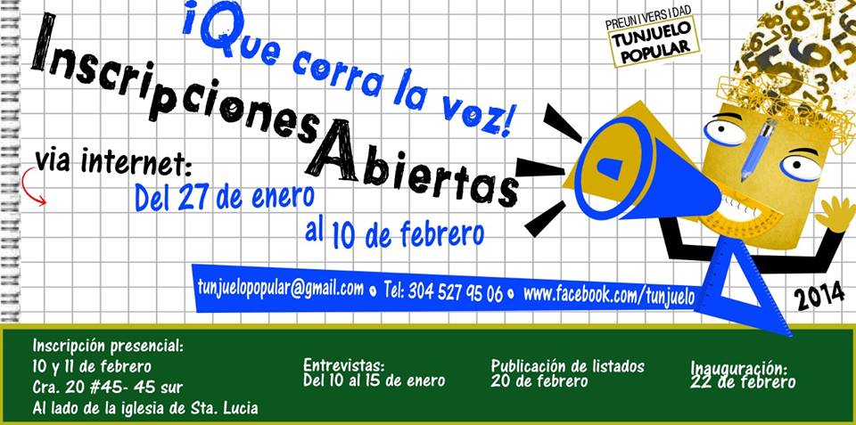 La preuniversidad TUNJUELO POPULAR los y las invita a participar en el proceso de educación de este año.