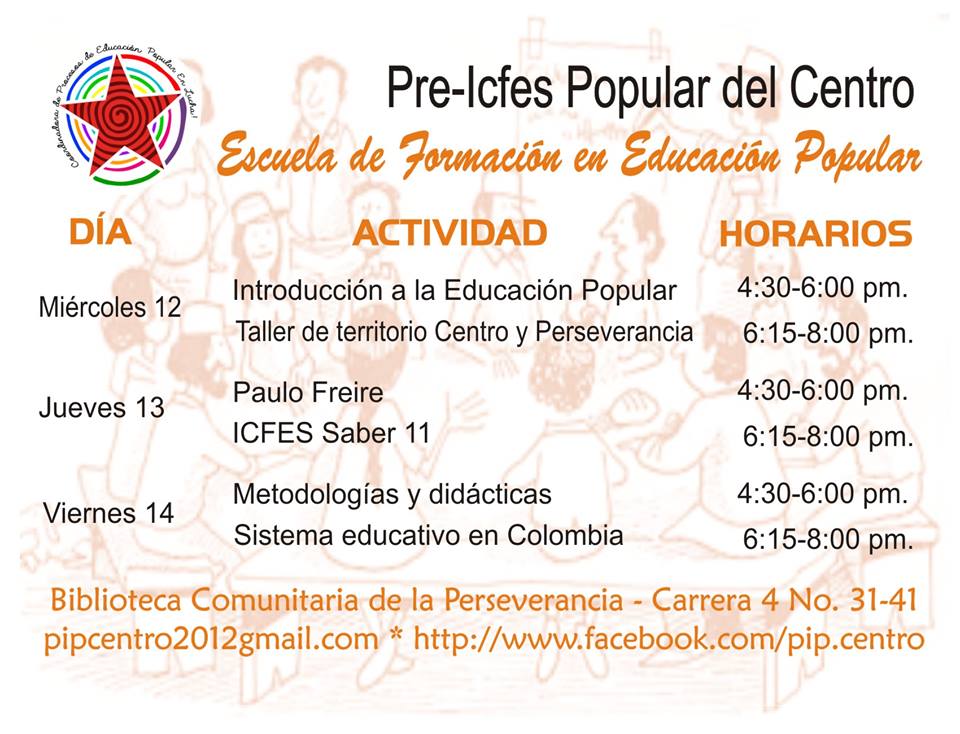 Viernes 14: Metodologías y didácticas de la Educación Popular y reflexiones sobre el Sistema Educativo en Colombia.