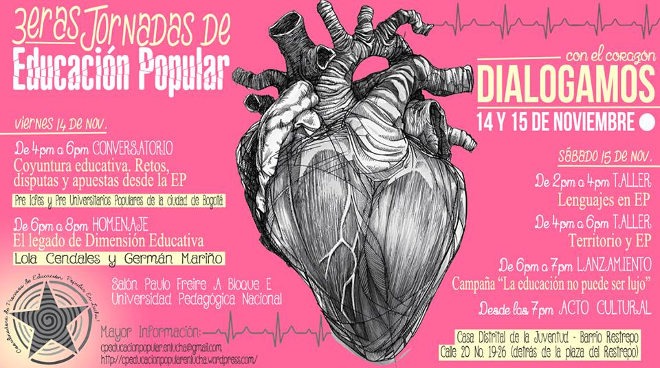La práctica de la educación popular requiere constantemente momentos de reflexión, pues solo en ella es que descubrimos nuevos retos y desafios que hacen necesario reinventarnos permanentemente. Es por esto que les invitamos a participar de las las Jornadas de Educación Popular que llegan a su tercera versión, para que compartamos aprendizajes, dudas, aciertos y demás en este camino de la construcción de una educación transformadora.