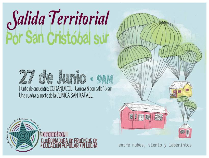 En esta oportunidad vamos a recorrer la localidad cuarta de Bogotá, territorio en el que se desarrollan dos de los cinco procesos que hacen parte de la Coordinadora: el Pre Icfes y Pre Universitario Popular El Hormiguero y el Pre Icfes Popular de San Cristóbal «También el Viento». Desde las 9am, nos encontráremos alrededor de varios propósitos: caminar y compartir nuestras reflexiones sobre las problemáticas y posibilidades de San Cristóbal Sur, contar y reconstruir la historia del sur-oriente, hacer un pequeño ejercicio de mapeo, y compartir, jugar, y seguir aprendiendo juntas y juntos.