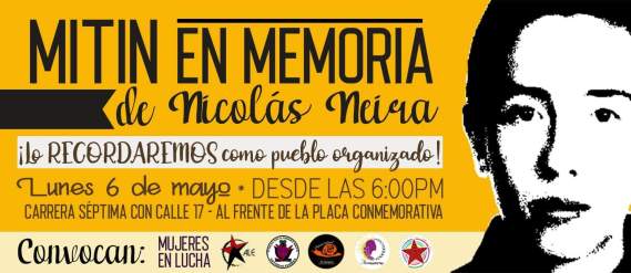 MITIN EN MEMORIA DE NICOLÁS NEIRA mayo 13, 2019 · de cpeducacionpopularenlucha · en Uncategorized. · MITIN EN MEMORIA DE NICOLÁS NEIRA ¡Lo recordamos como puedo organizado! LUNES 6 DE MAYO – DESDE LAS 6:00PM Carrera séptima con calle 18. Convoca: Encuentro por la Autonomía y la Vida Digna Comparte esto: Compartir en X (Se abre en una ventana nueva) X Comparte en Facebook (Se abre en una ventana nueva) Facebook Me gusta Cargando... Relacionado