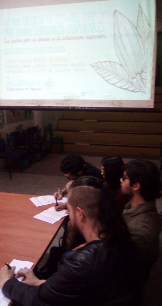 La jornada inicio sobre las 4:00 pm con el panel “A 10 años de los Pre Icfes y Pre Universitarios Populares en Colombia. La lucha por el acceso a la educación superior” y la intervención de Juan del Colectivo Cuerpos Diversos en Rebeldía (COCUER) de la Universidad Nacional, colectivo que desarrolla un pre universitario inclusivo y popular para personas con capacidades diversas, de aspecto físico, psicológico o sensorial, con el fin de facilitar su ingreso a la educación superior pública, al tiempo que promueven reflexiones pedagógicas y políticas desde la Escuela de Formación Popular Hellen Keller. El colectivo destaco las características de una sociedad organizada en torno al capacitismo, la estructura excluyente de la educación superior y la cultura académica en general con las personas con discapacidades, y la importancia de desarrollar un proceso pedagógico que responda a la diversidad humana.
