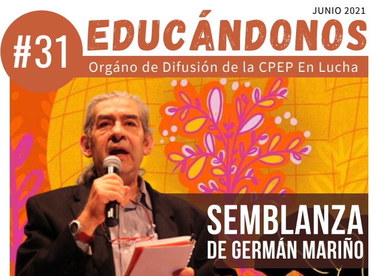 Boletín Educándonos No. 31 junio 7, 2021 · de cpeducacionpopularenlucha · en Boletín Educándo-nos. · Compartimos nuestro boletín Educándonos número 31, órgano de difusión de la Coordinadora de Procesos de Educación Popular (CPEP) En Lucha, correspondiente al mes de junio de 2021, con una semblanza del educador Germán Mariño. boletin-educandon-os-no.-31.-junio-2021Descarga Comparte esto: Compartir en X (Se abre en una ventana nueva) X Comparte en Facebook (Se abre en una ventana nueva) Facebook Me gusta Cargando... Relacionado