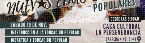 #ENEP#9naENEP#CPEPEnLucha#EducaciónPopularColombia#EducaciónPopular#laeducaciónnopuedeserunlujo 9na Escuela de Nuevas Educadoras PopularesBiblioteca Comunitaria del barrio La Perseverancia (Cra 4 No. 31-41) Sábado 19 de noviembre. 9:00 amIntroducción a la Educación PopularDidáctica y Educación Popular Sábado […]