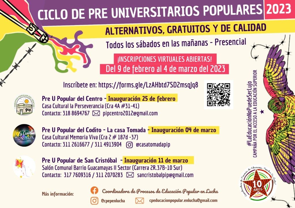 Contacto: 311 2616677 / 311 4913904 La Casa Tomada – Preicfes Popular del Codito