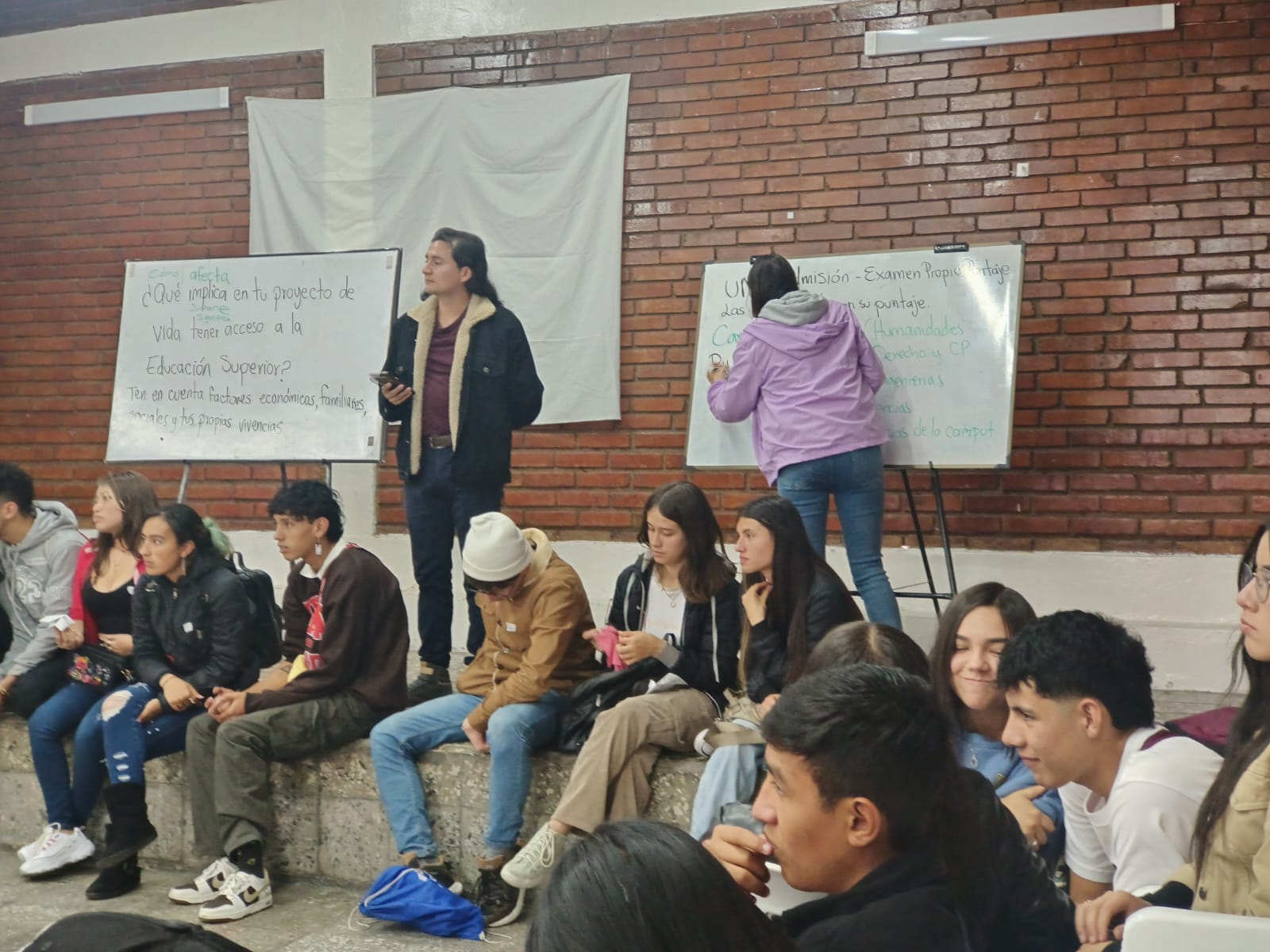 La jornada inicio con la presentación de las actividades del día, lo que luego dio paso a un taller sobre el ingreso a la educación superior y la reflexión colectiva sobre las barreras de acceso y permanencia que existen en este nivel educativo. Mas adelante, egresados de diferentes instituciones presentaron brevemente las características generales y de ingreso de la Universidad Nacional de Colombia, la Universidad Distrital Francisco José de Caldas, la Universidad Pedagógica Nacional y la Universidad Colegio Mayor de Cundinamarca, así como de algunos programas de becas y prestamos en universidades privadas.