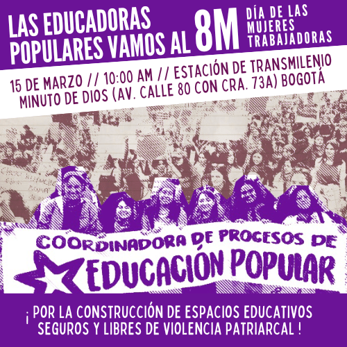 Las Educadoras Populares vamos al 8 de marzo marzo 15, 2026 · de cpeducacionpopularenlucha · en Movilización, Movilizaciones. · Las Educadoras Populares vamos al 8 de marzo, día de las mujeres trabajadoras¡Por la construcción de espacios educativos y libres de violencia patriarcal!Seguimos construyendo educación feminista y popular Comparte esto: Compartir en X (Se abre en una ventana nueva) X Comparte en Facebook (Se abre en una ventana nueva) Facebook Me gusta Cargando... Relacionado