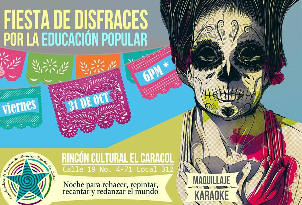 Acompáñanos el viernes 31 de octubre con disfraces, mascaras, maquillaje y mucha alegría. Vamos a pintar a la Educación Popular de muchos colores, vamos a cantarla y a bailarla, vamos a brindar por una educación para la transformación y la libertad. Juntas y juntos reharemos, repintaremos, recantaremos, y redanzaremos el mundo en una sola noche.